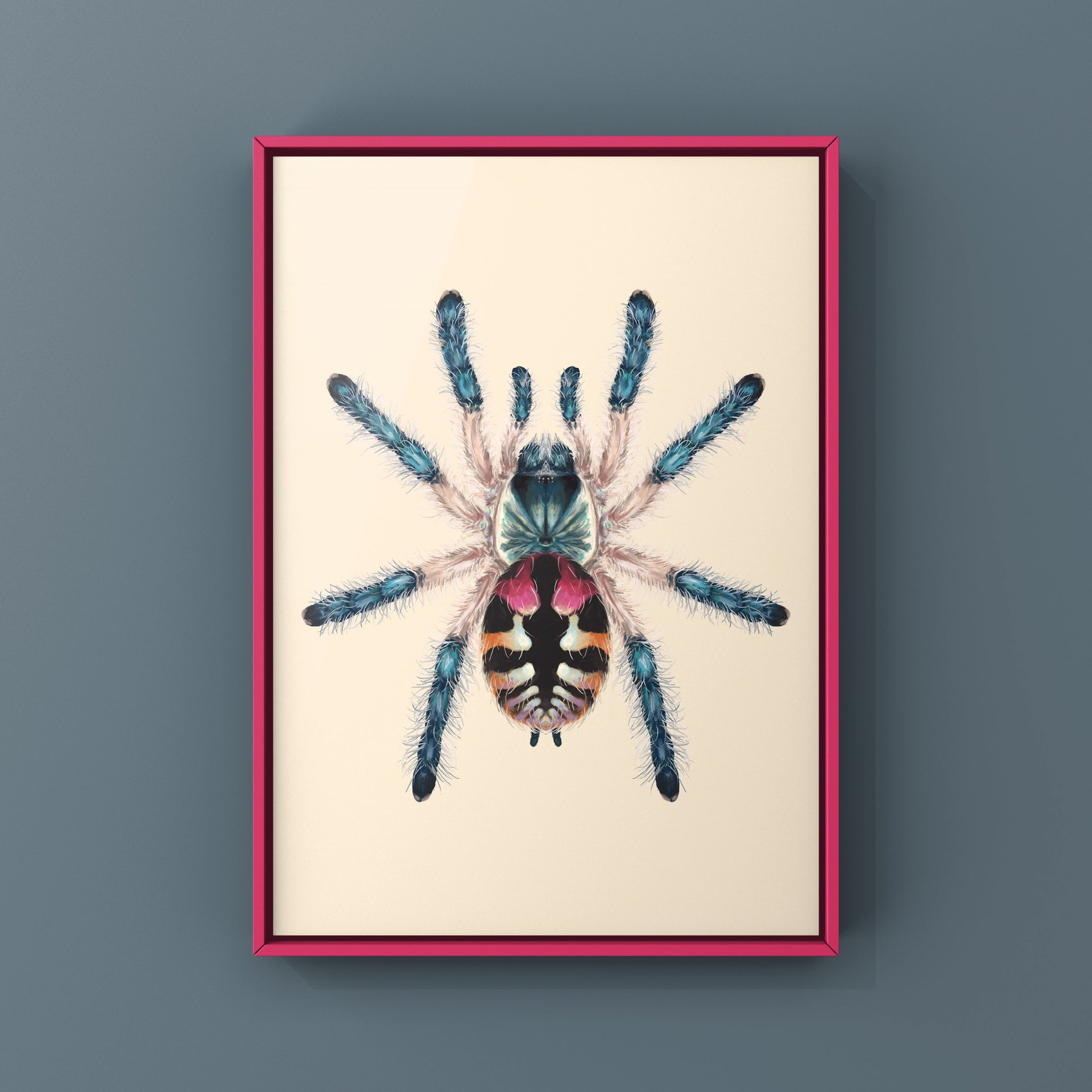 The textless style offers a minimalist artistic style that transforms the natural existence of these wonderful species into decorative art. This style highlights the beauty of the Theraphosidae family without the technical side associated with the classifications.