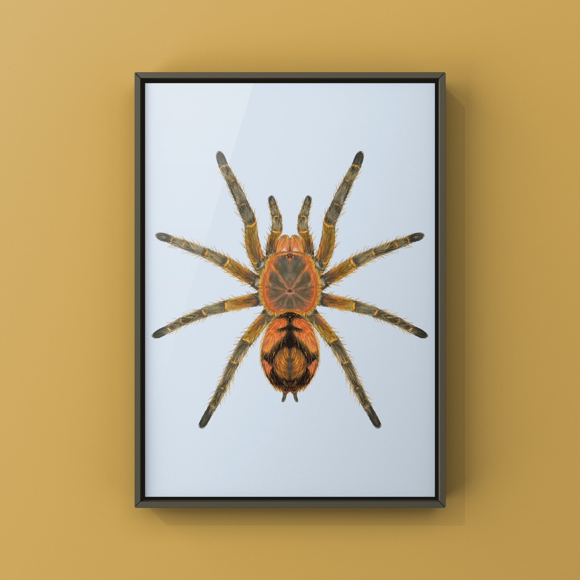 The textless style offers a minimalist artistic style that transforms the natural existence of these wonderful species into decorative art. This style highlights the beauty of the Theraphosidae family without the technical side associated with the classifications.