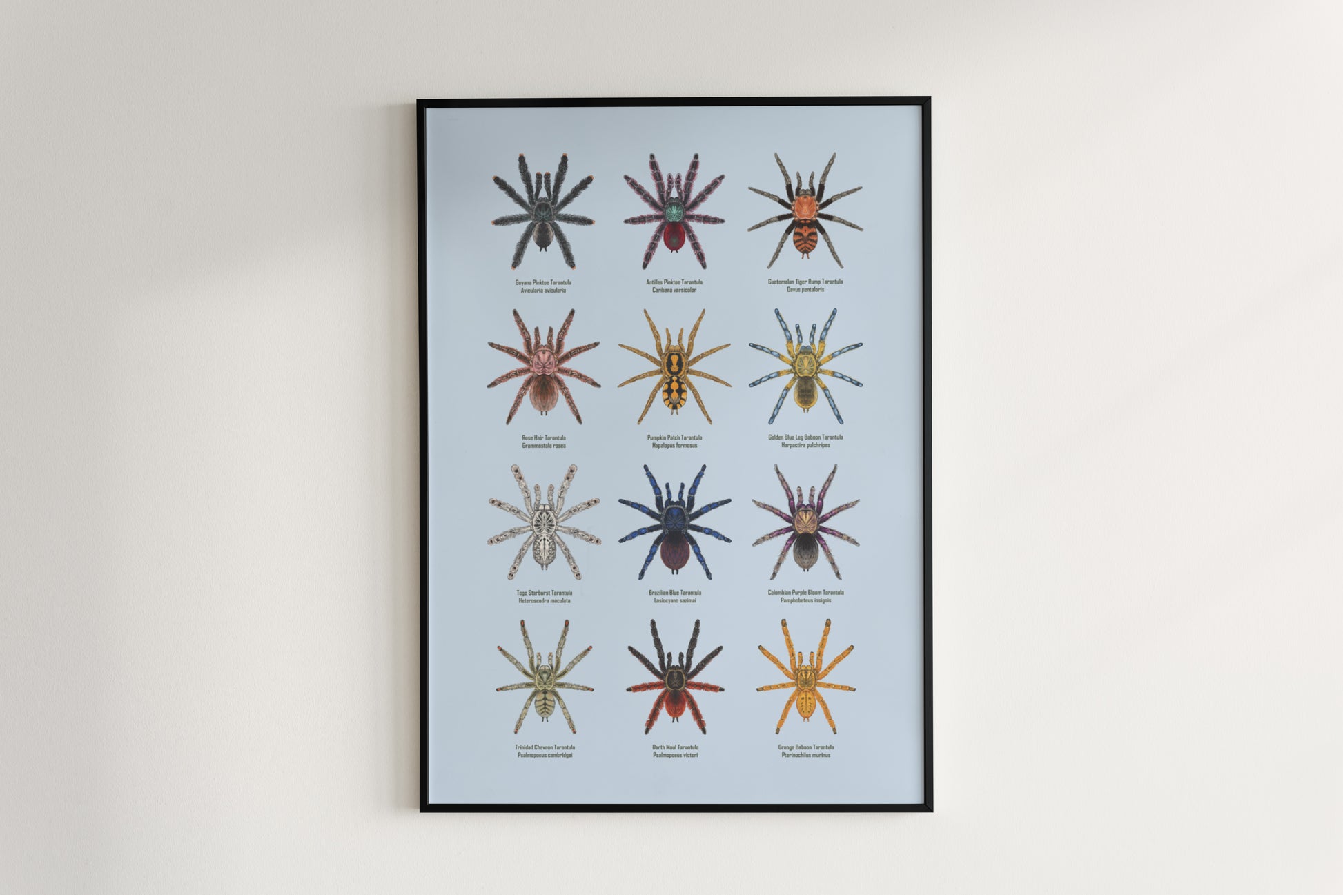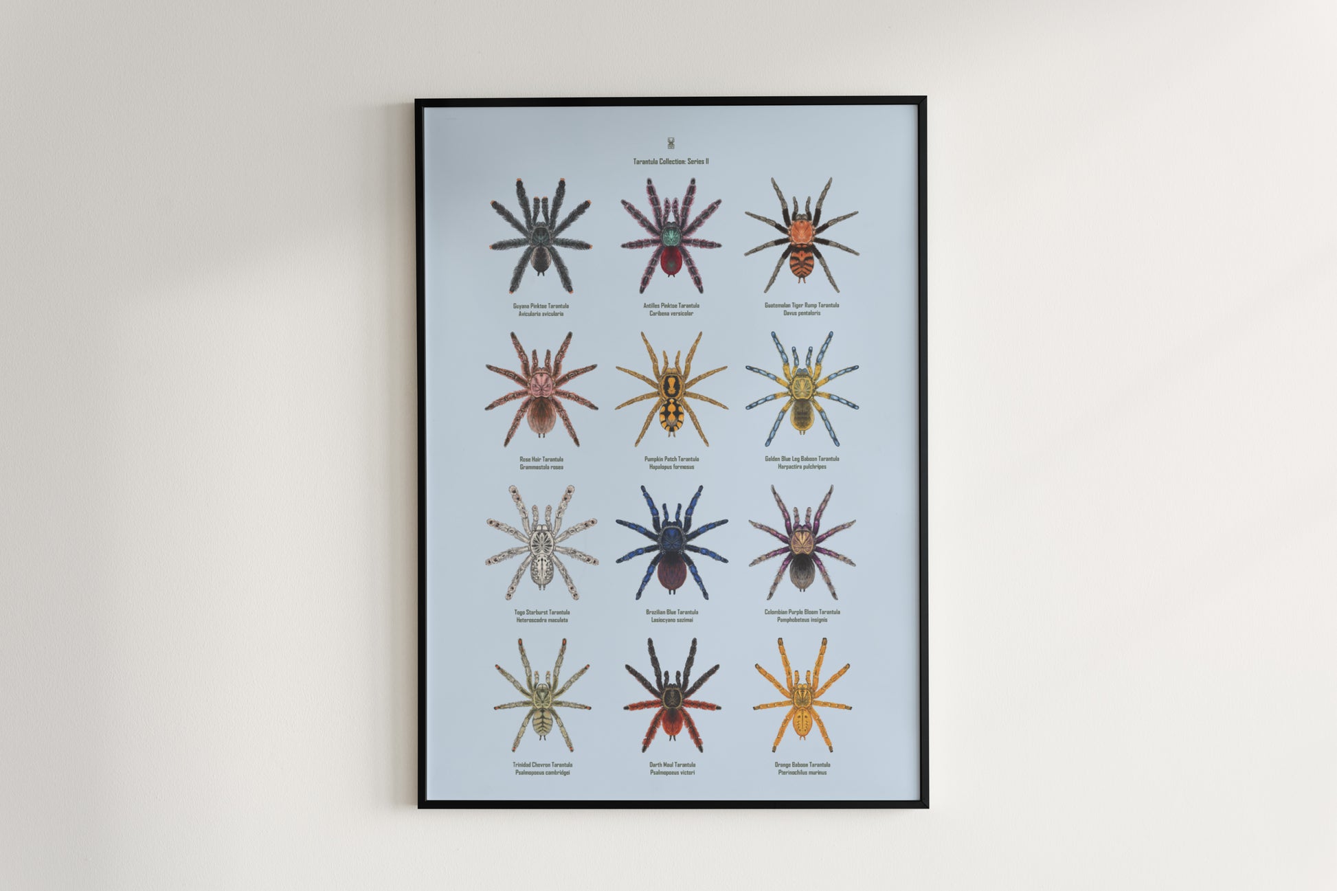 Style C offers a minimalist artistic style that transforms the natural existence of these wonderful species into decorative art. This style highlights the beauty of the Theraphosidae family without the technical side associated with the classifications.